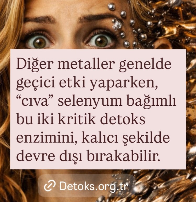 🔴 Diğer metaller genelde geçici etki yaparken, cıva; selenyum bağımlı bu iki kritik detoks enzimini kalıcı şekilde devre dışı bırakabilir.
