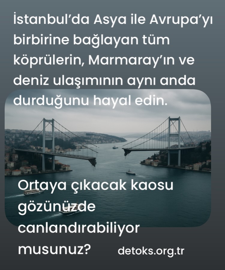 İstanbul’da Asya ile Avrupa’yı birbirine bağlayan tüm köprülerin, Marmaray’ın ve deniz ulaşımının aynı anda durduğunu hayal edin.