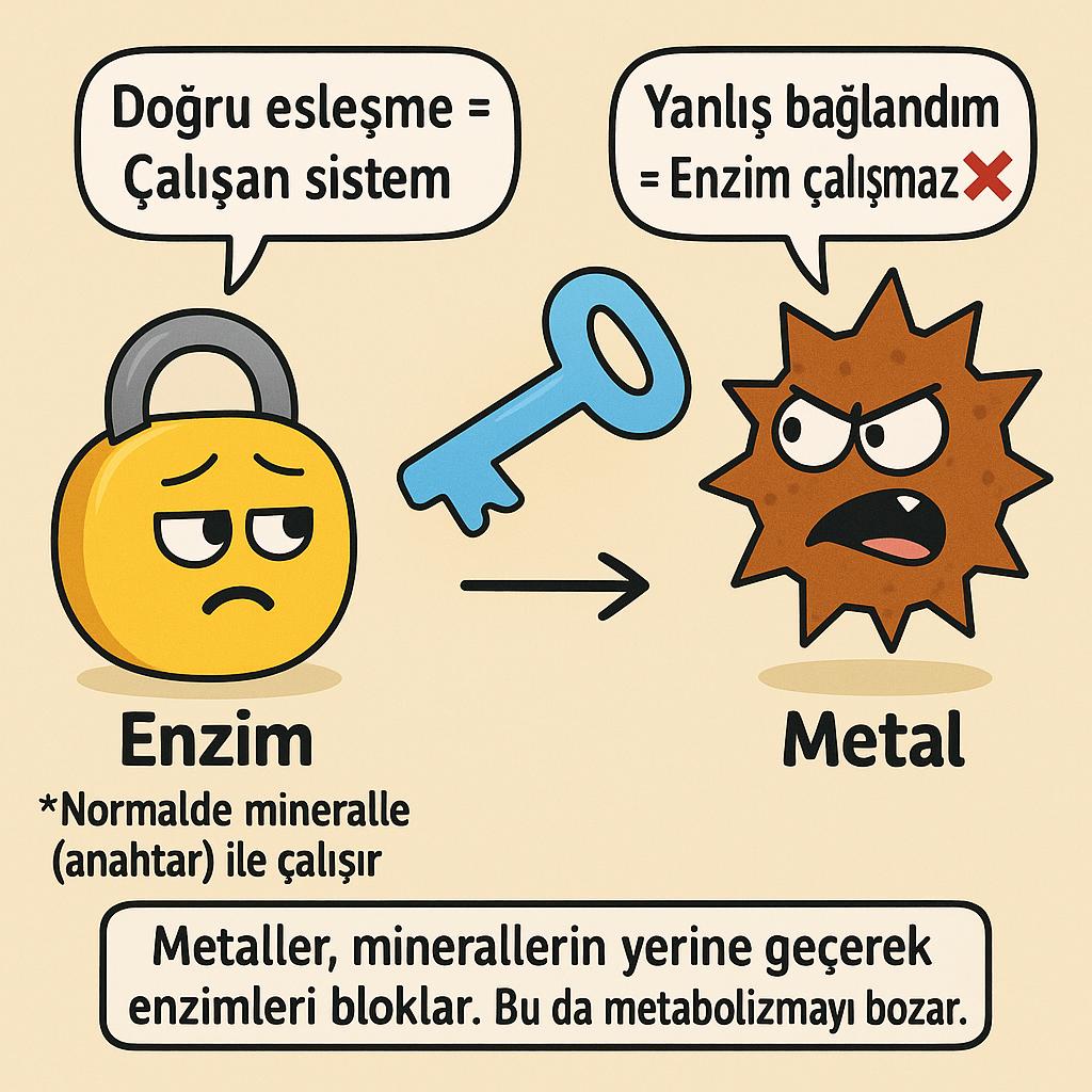 Normalde vücut metalleri kontrol altında tutar. Ama ağır metal yükü arttığında: Bu sistemler ya aksak çalışır ya da tamamen durur.
