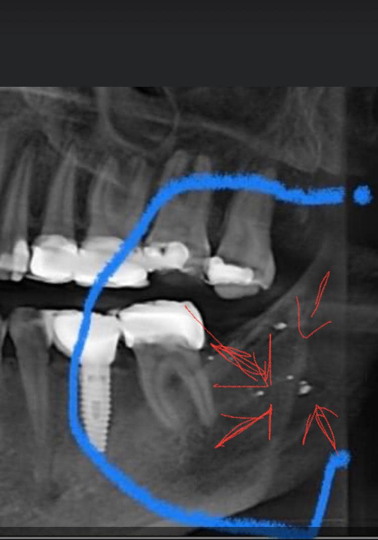 Çene bölgesinden alınan görüntüler aynı zamanda diğer yabancı cisimleri (örn. Kök dolgu malzemesi), iltihaplanma odaklarını, kemik nekrozu vb. ortaya çıkaracaktır. Bunların tümü, güvenlik açısından en büyük özen gösterilerek profesyonelce çıkarılmalıdır.