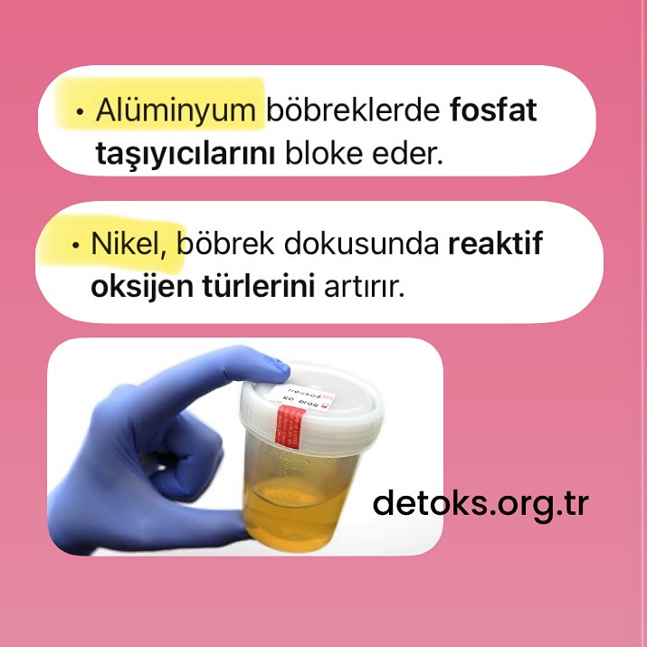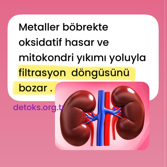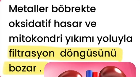 Metal fazlalıkları; cıva, kurşun, kadmiyum, alüminyum, arsenik ve nikel gibi elementler bu açık kapılardan girer ve oksidatif hasar–mitokondri yıkımını başlatarak böbrek filtrasyon döngüsünü bozabilir.