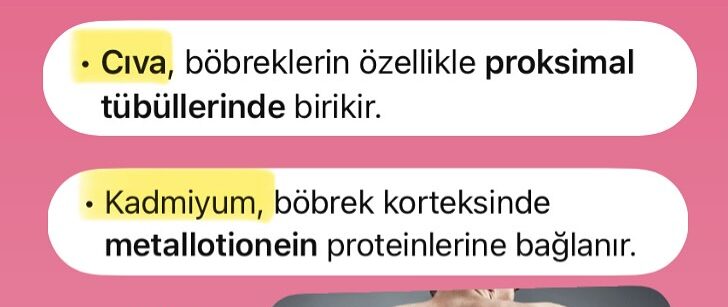 | Kadmiyum (Cd) | Metallotionein bağlanması, Zn düşüşü | Zn, Se, Cu | Proteinüri, fosfat kaybı |