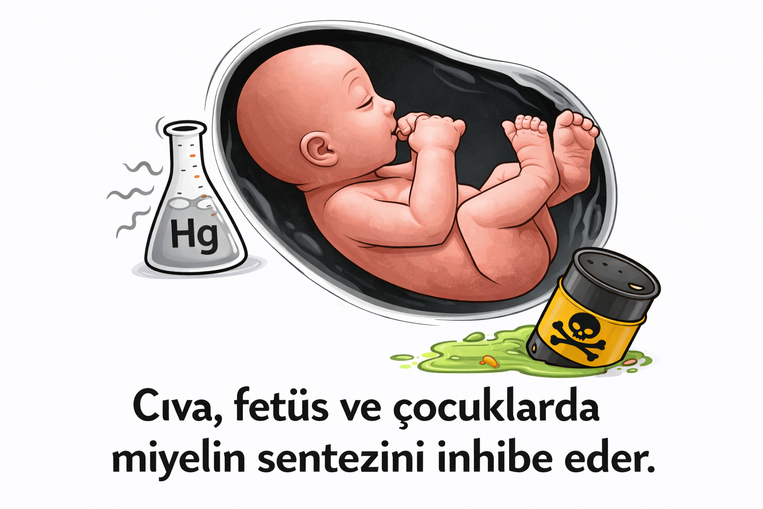 Cıva fetüs ve çocuklarda miyelin sentezini inhibe eder