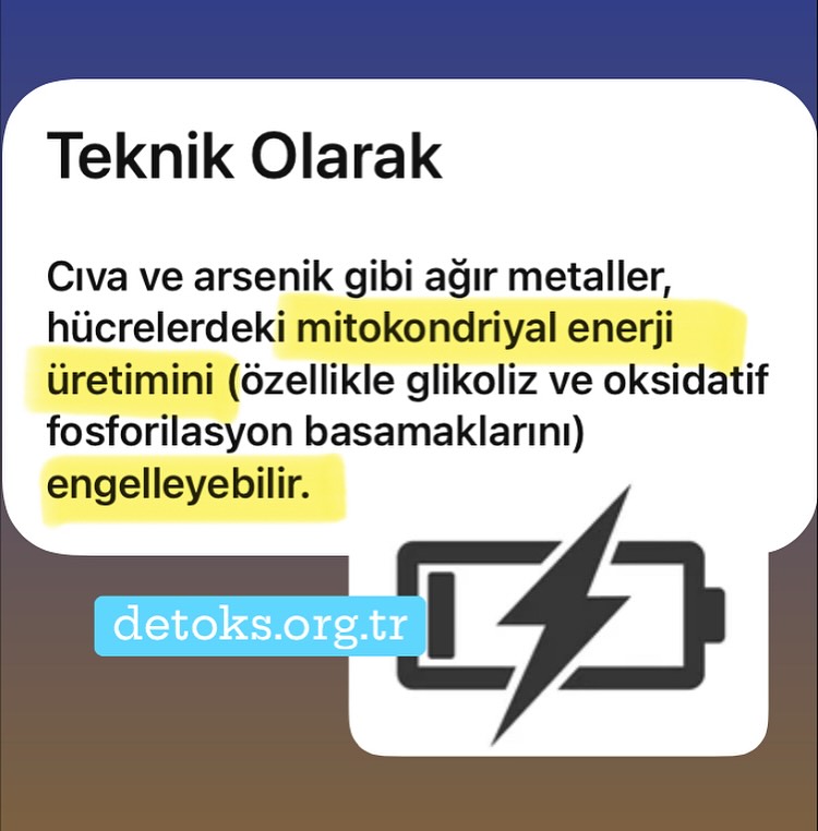 Cıva ve arsenik gibi ağır metaller, hücrelerdeki mitokondriyal enerji üretimini (özellikle glikoliz ve oksidatif fosforilasyon basamaklarını) engelleyebilir.