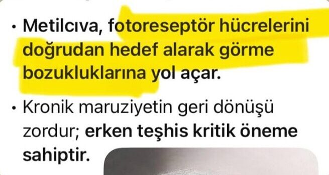 • Metilcıva, doğrudan gözün fotoreseptör hücrelerini hedef alarak görme bozukluklarına neden olabilir.