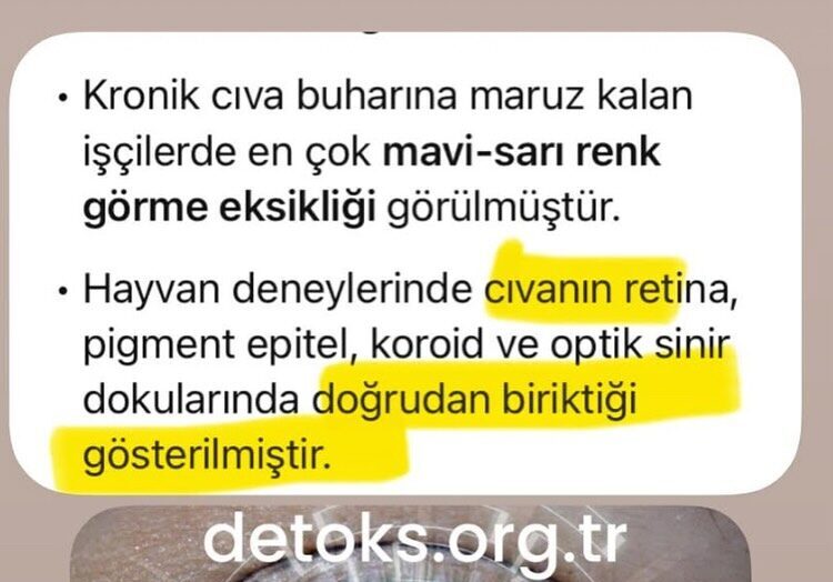 • Cıva, gözün ışığı algılayan hücrelerinde ve beyne giden görme yollarında birikerek hasara yol açabilir.