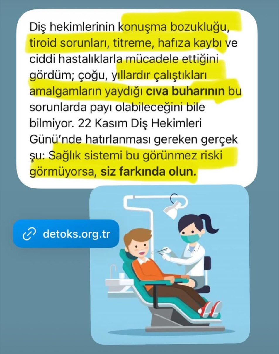 Ama gerçek şu ki: milyonlarca amalgam dolgulu insan gibi, diş hekimleri de aynı risklerin mağduru.
