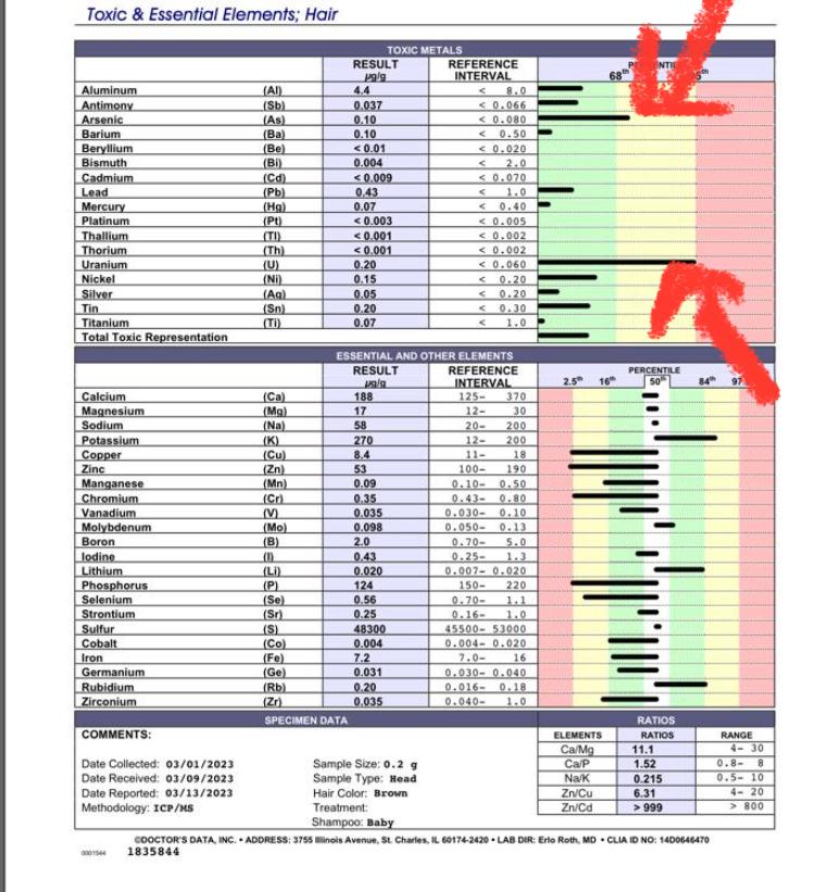 5.Buradaki saç testinde yüksek uranyum ve arsenik tespit edilmiş, frekans testinde ise alüminyum, kadmiyum, kurşun tespit edilmiş. Eğer direct labs yurt dışı saç testi yapılmasaydı uranyum zehirlenmesi bu test sahibi için tespit edilemeyecekti.