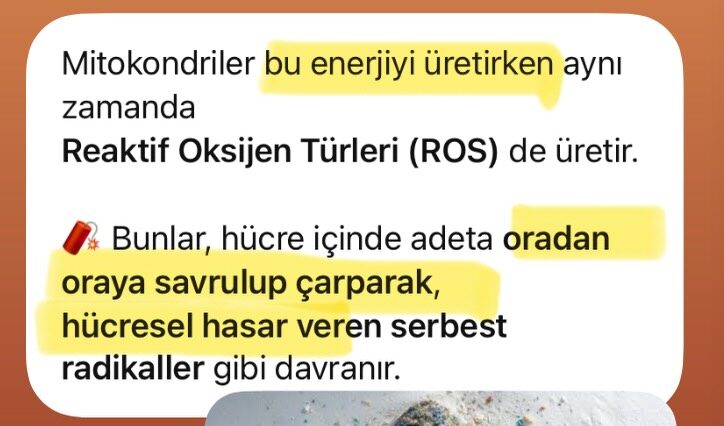 Mitokondriler bu enerjiyi üretirken aynı zamanda Reaktif Oksijen Türleri (ROS) de üretir.