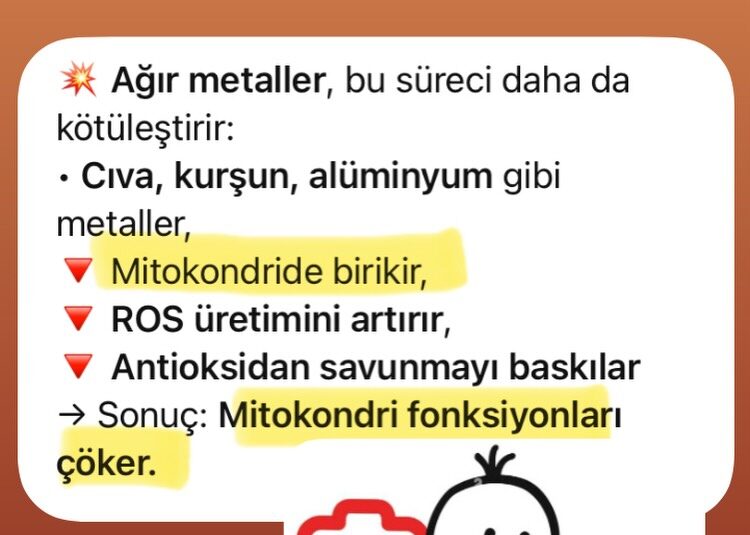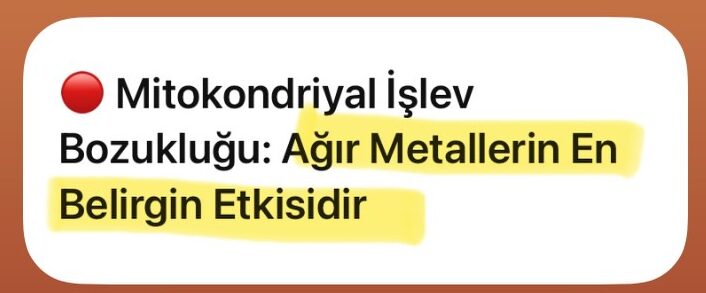 🔴 Mitokondriyal İşlev Bozukluğu: Ağır Metallerin En Belirgin Etkisidir.