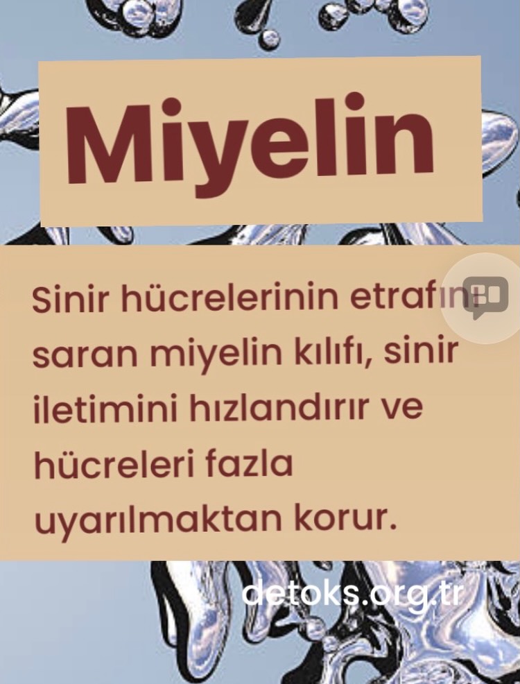 Miyelin kılıfı %70’i yağ olan aksonları kaplayan, maddedir. Bu sinir hücrelerini koruyan yağlı bir örtü gibidir.