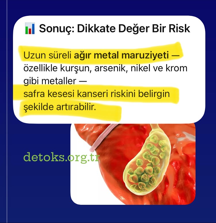 Uzun süreli ağır metal maruziyeti — özellikle kurşun, arsenik, nikel ve krom gibi metaller — safra kesesi kanseri riskini belirgin şekilde artırabilir.