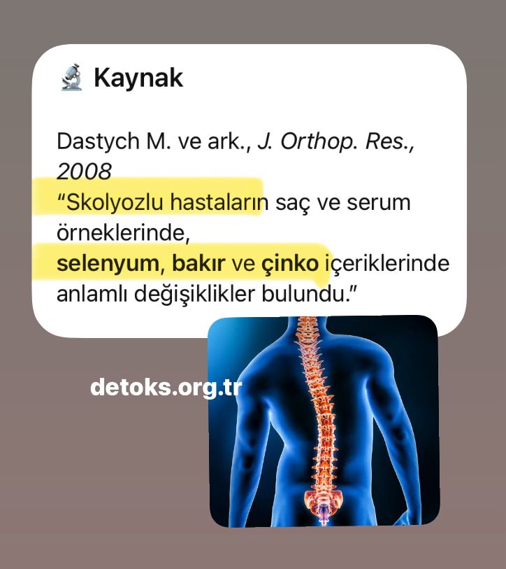 Araştırmalar, skolyoz hastalarının saç ve serum örneklerinde: Çinko, bakır ve selenyum gibi elementlerde anlamlı değişiklikler olduğunu gösteriyor.