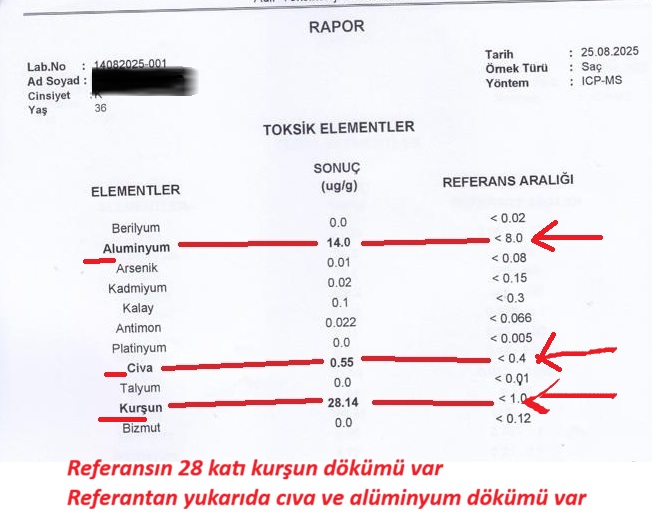 Detoks süreci devam ediyor ve yeni test verileri de bizi şaşırtmaya devam ediyor. Referanstan 28 kat yüksek kurşun ve ayrıca cıva ile alüminyum dökümü de testlere yansımış durumda.