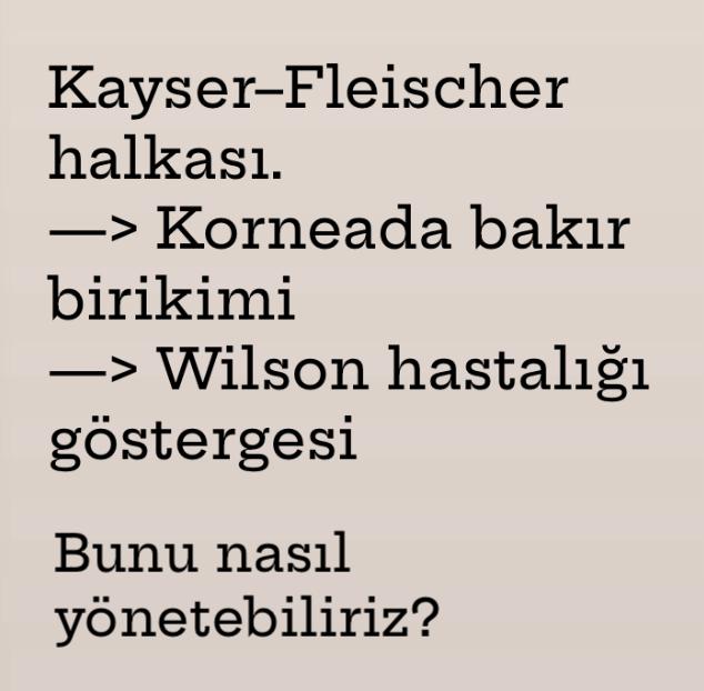 - Göz Belirtileri: Kayser–Fleischer Halkası